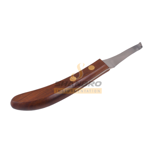 Classic rough and tuff Hoof knife wooden handle High grade stainless steel for horses, A hoof trimming knife with a drop down blade design. The drop blade makes it easier to trim out those deep cupped out soles. A knife of excellent quality and price.